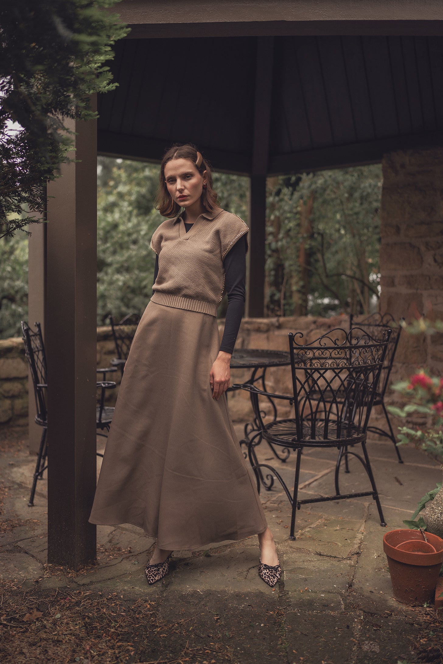 This A-line skirt offers makes an essential addition to any wardrobe. The wool fabric provides warmth and breathability, while the smooth cut enhances silhouette with understated sophistication.